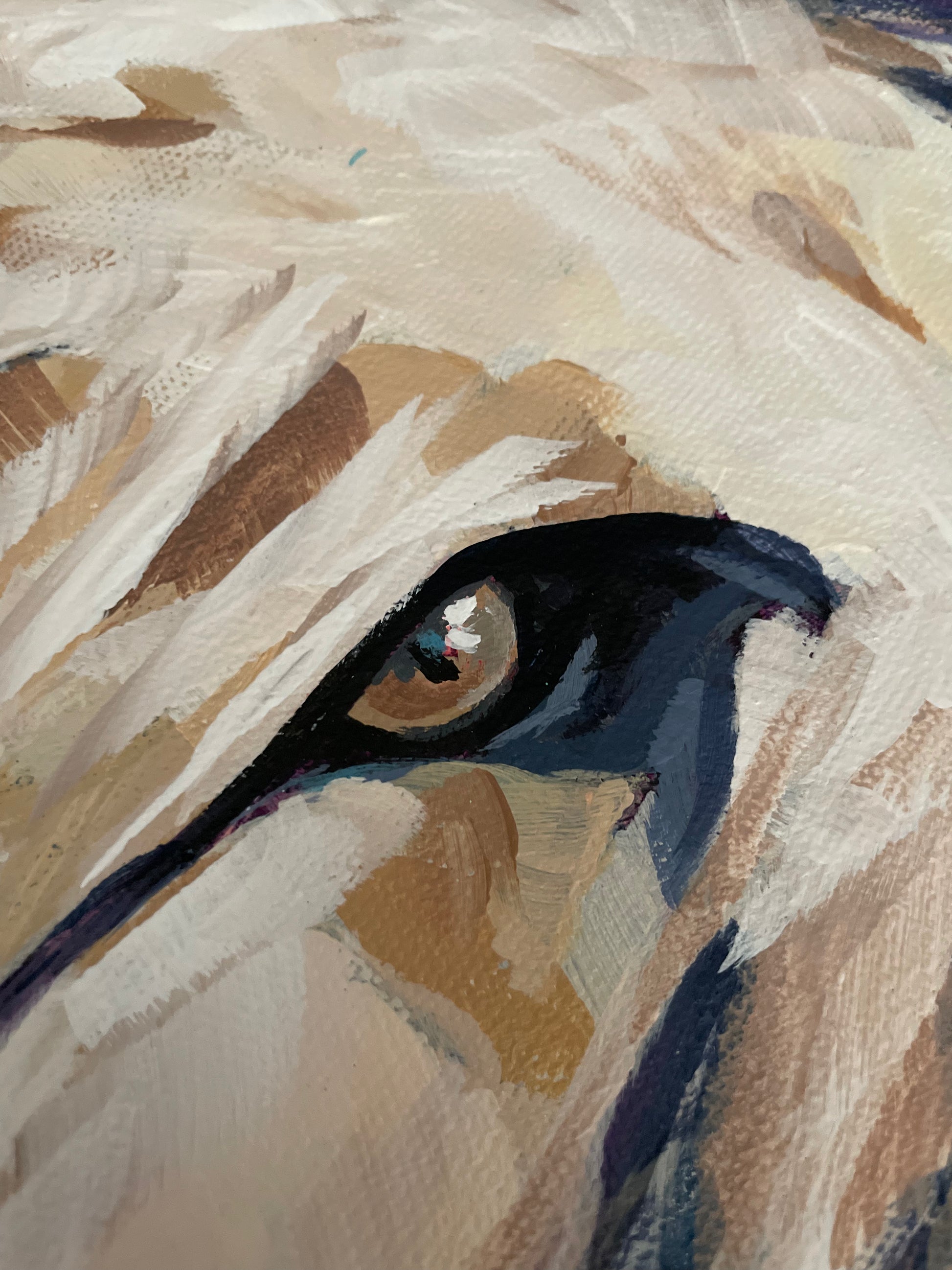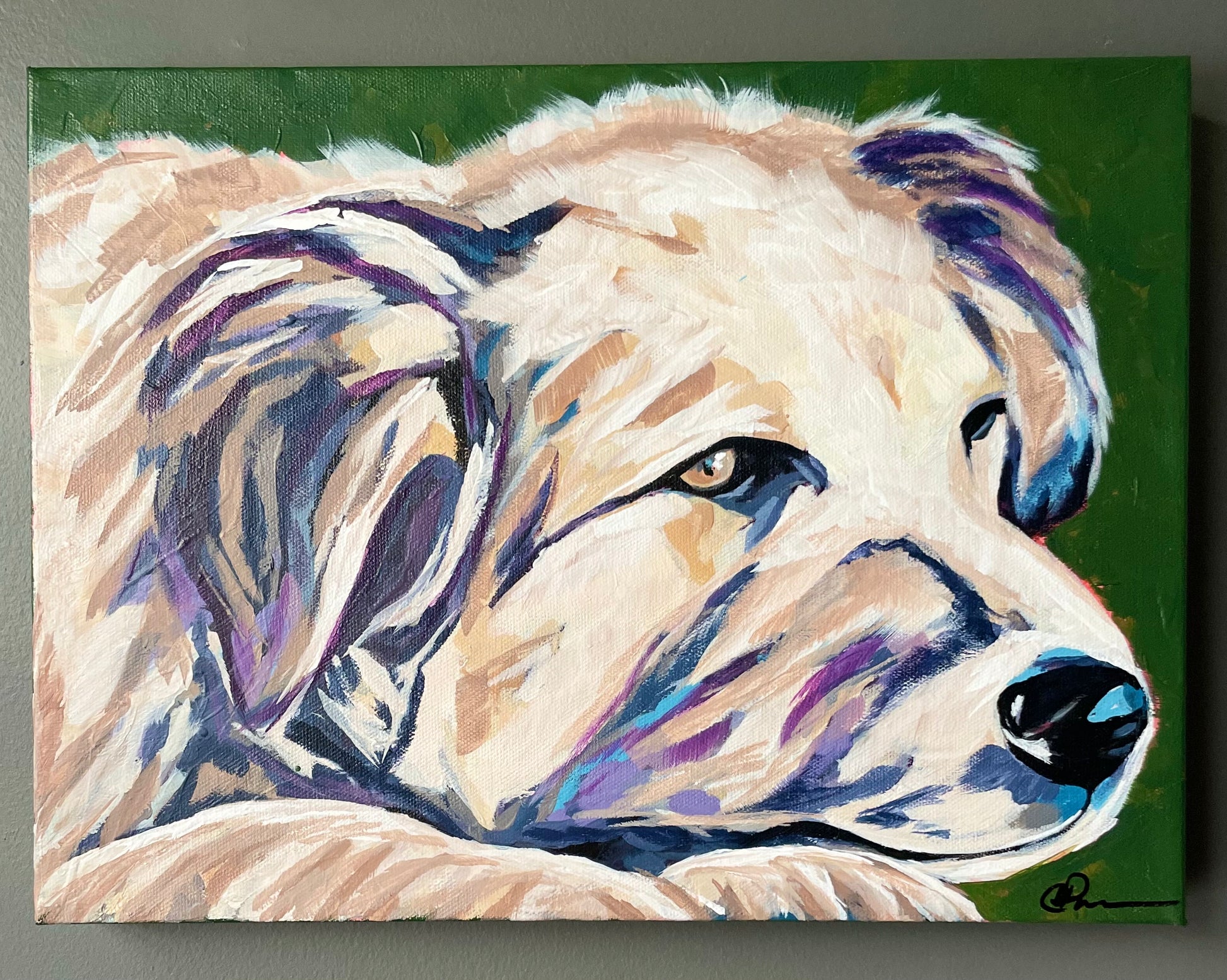 Her name is Callie, and she is a rescue pup around 4 years old at the time of the picture. Her eyes are always filled with love, and I was so glad I was able to capture a bit of her spirit with my paint brush.