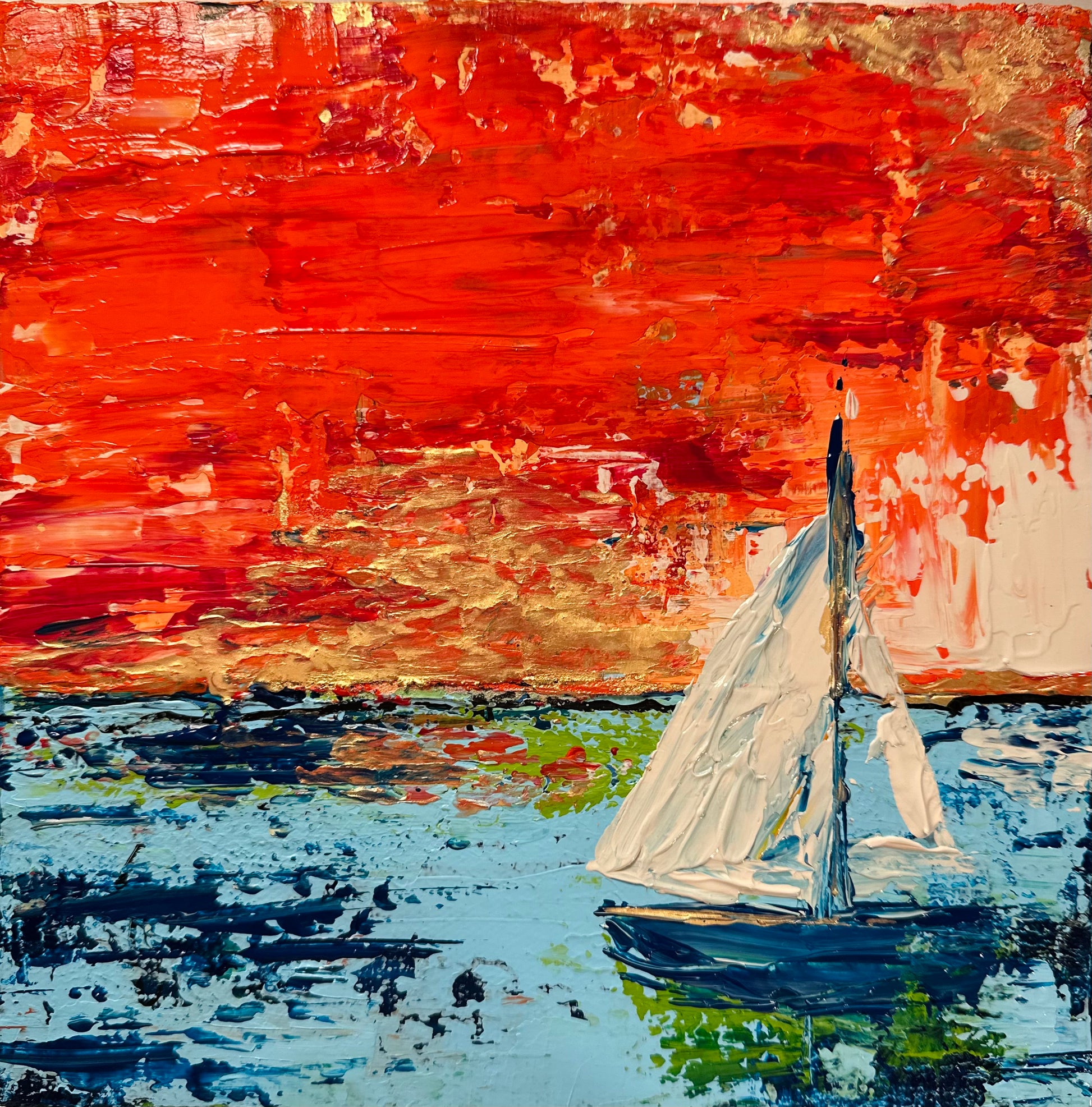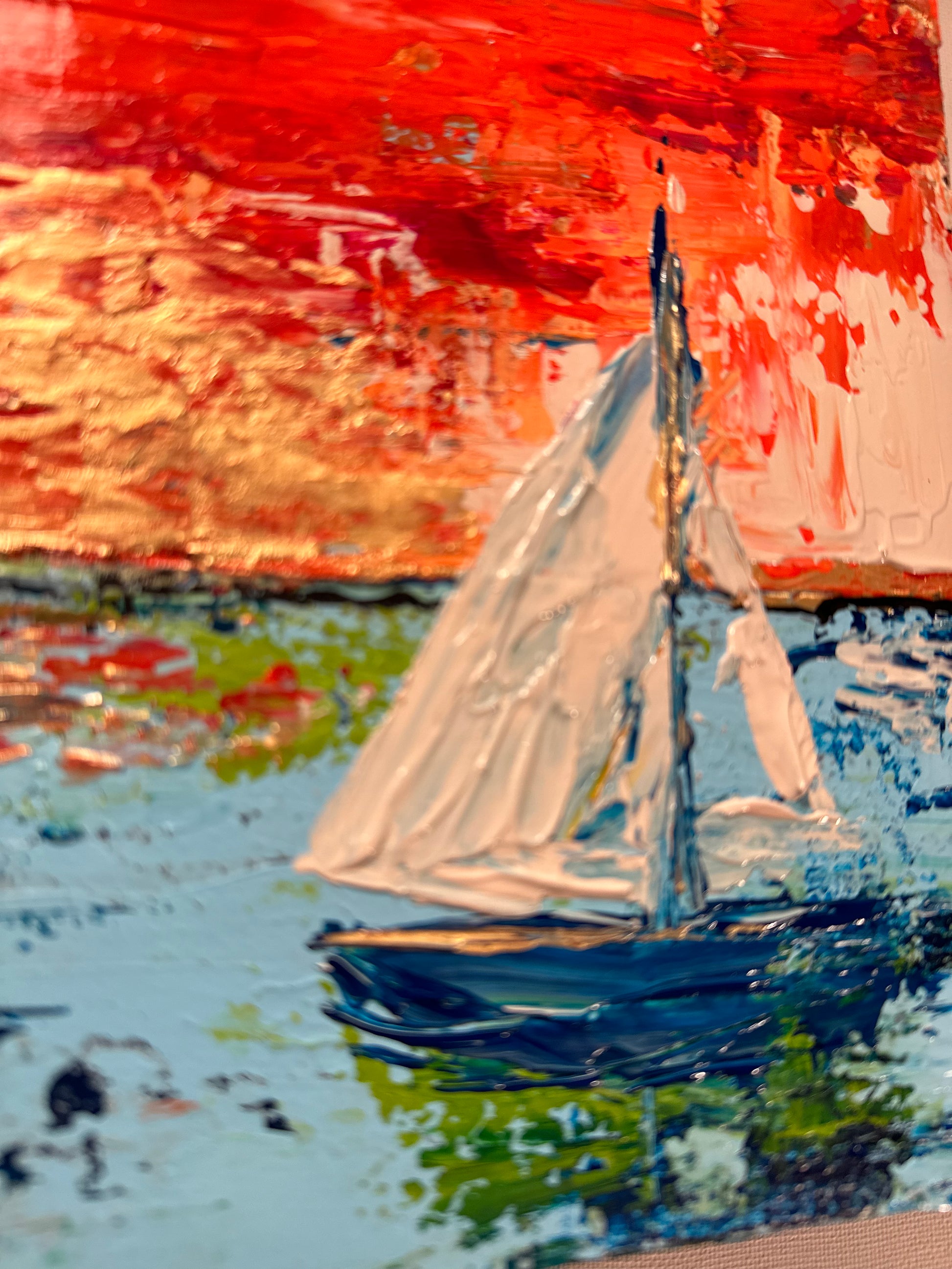 A textured dream matching my ideas of a sunset and water view while the last of the boats come in to dock.