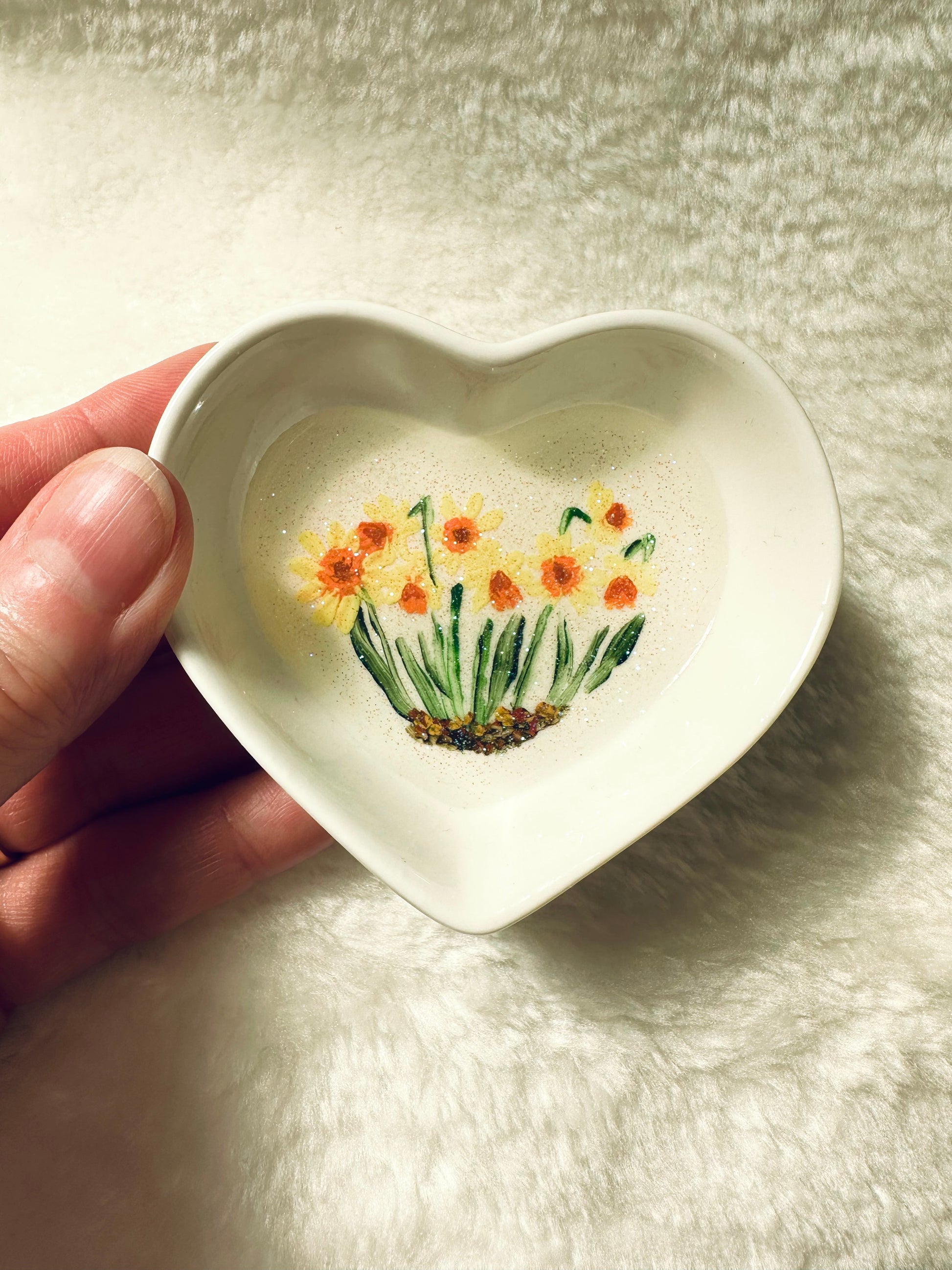 These tiny heart shaped dishes make the perfect addition to your home décor. Big enough to catch earrings, a few rings or odd desk supplies, they give a flare to their surroundings and are little pieces of art all on their own.