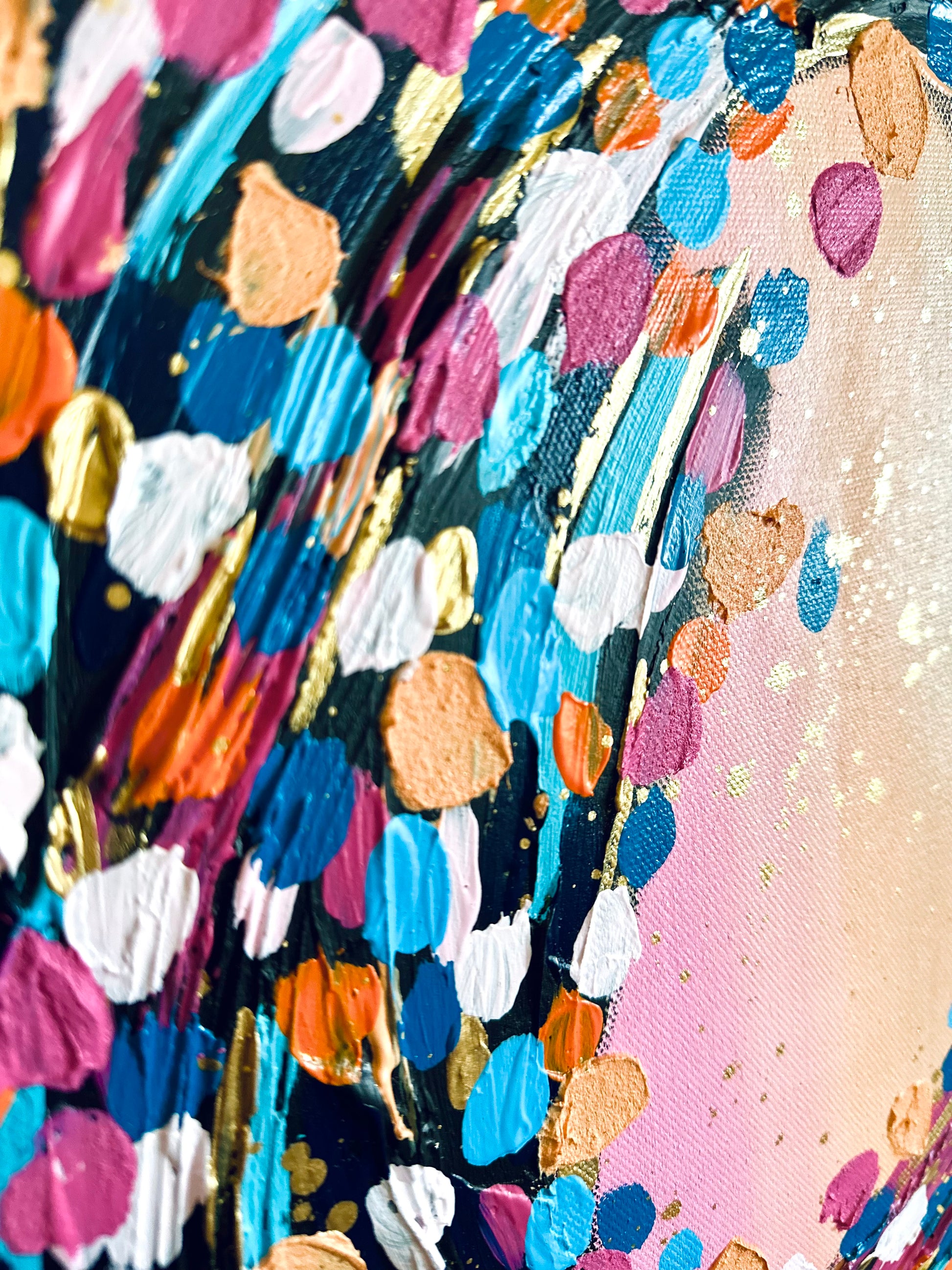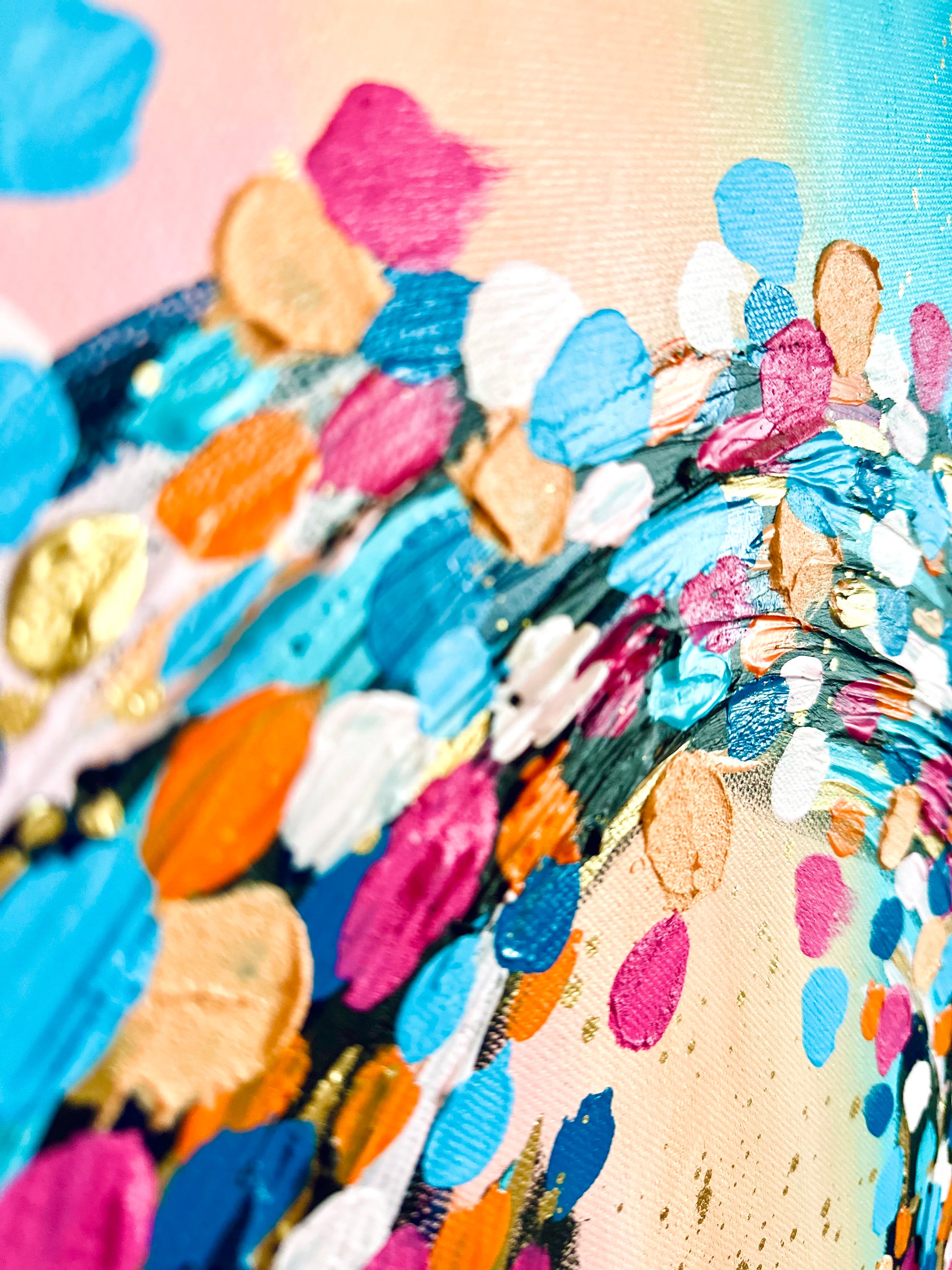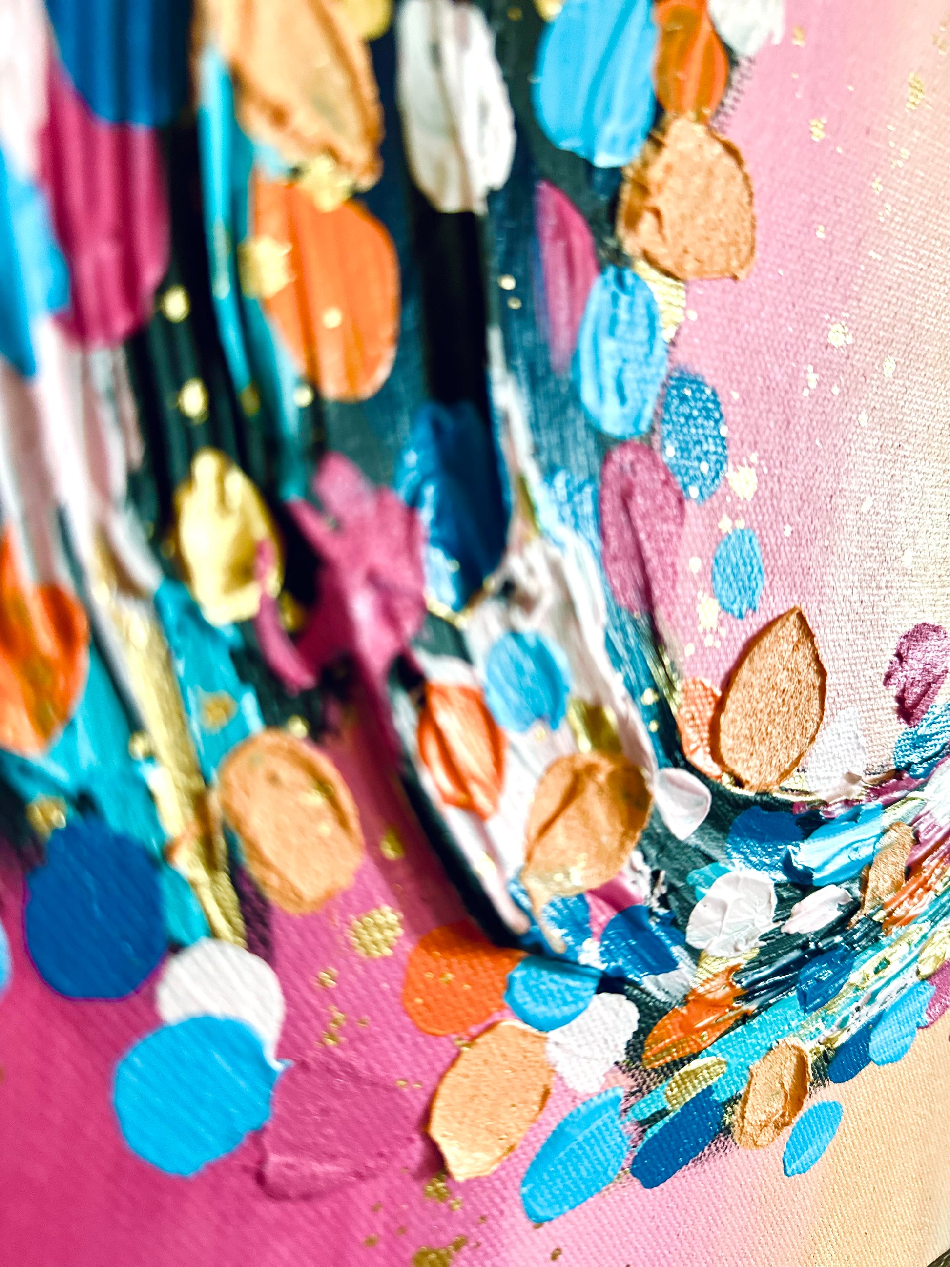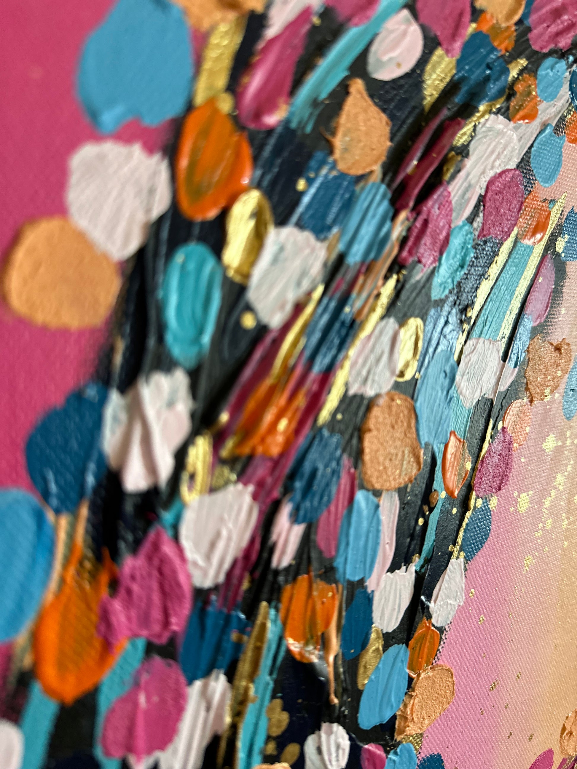 Do You love a splash of surprise? Do you crave bright, happy colours? This canvas has deep strokes of paint layered with colour to pack a punch.