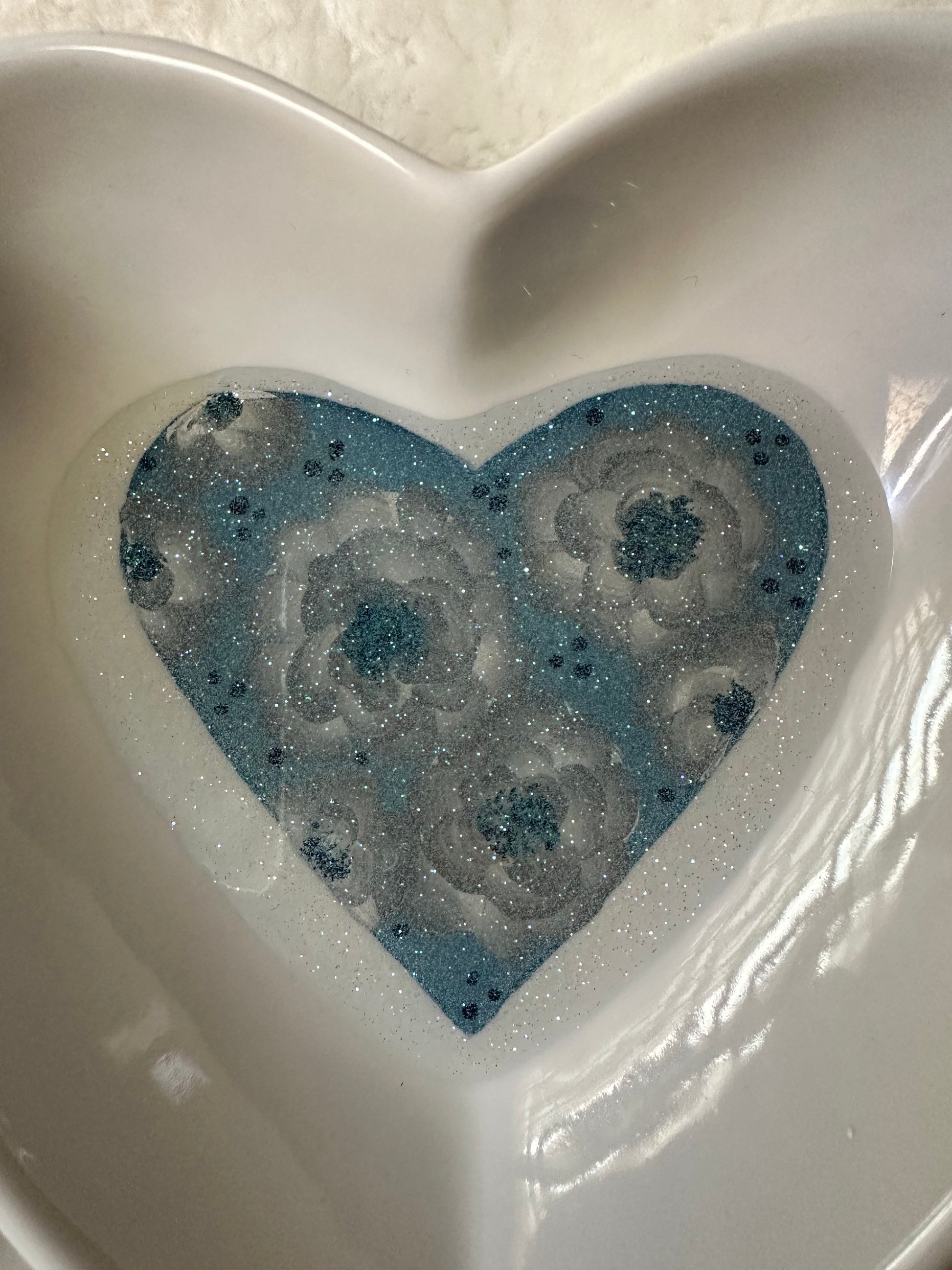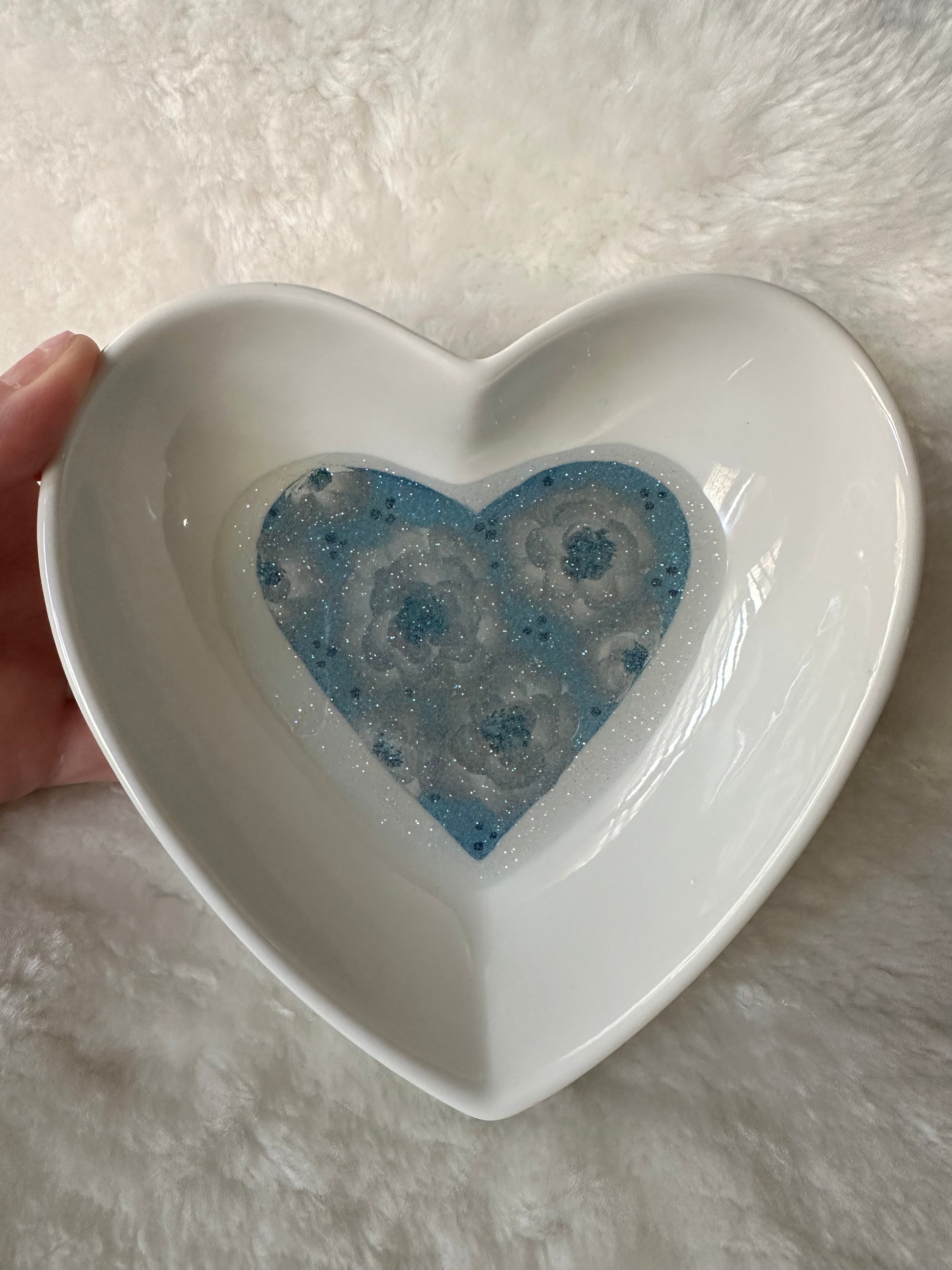 All of my trinket dishes are ceramic, hand painted mini works of art. Finished with a protective resin coating that adds luxury and depth to the art underneath with a hint of sparkle to make you smile.