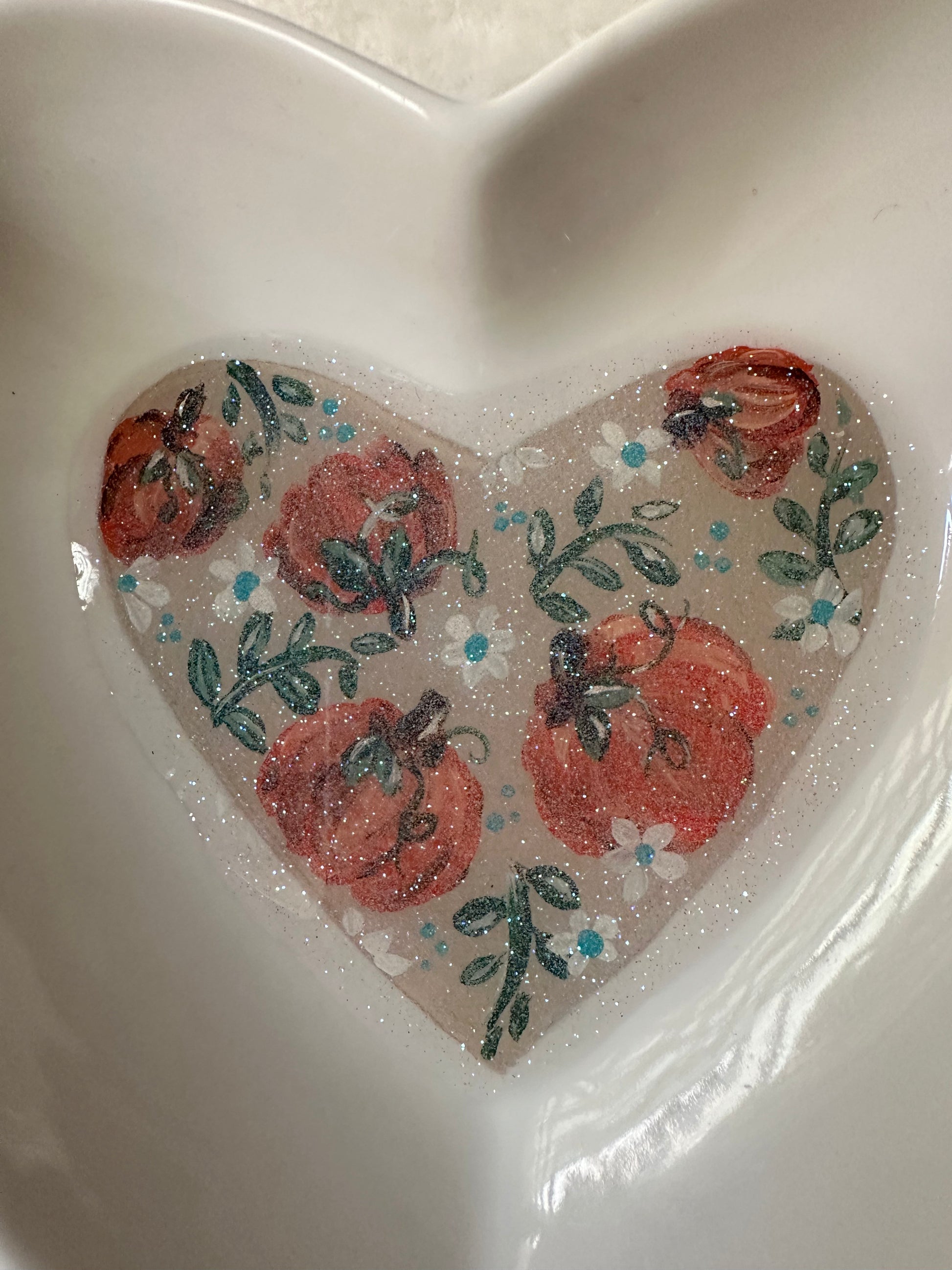 All of my trinket dishes are ceramic, hand painted mini works of art. Finished with a protective resin coating that adds luxury and depth to the art underneath with a hint of sparkle to make you smile.