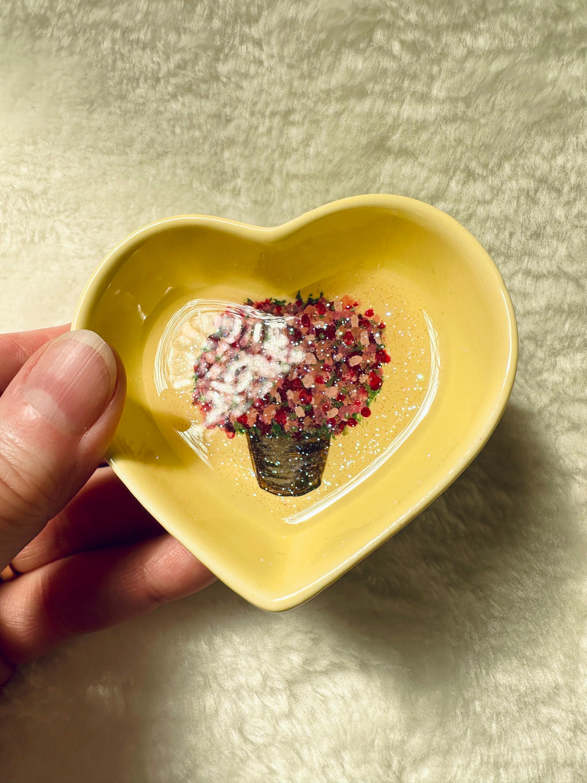 These tiny heart shaped dishes make the perfect addition to your home décor. Big enough to catch earrings, a few rings or odd desk supplies, they give a flare to their surroundings and are little pieces of art all on their own.