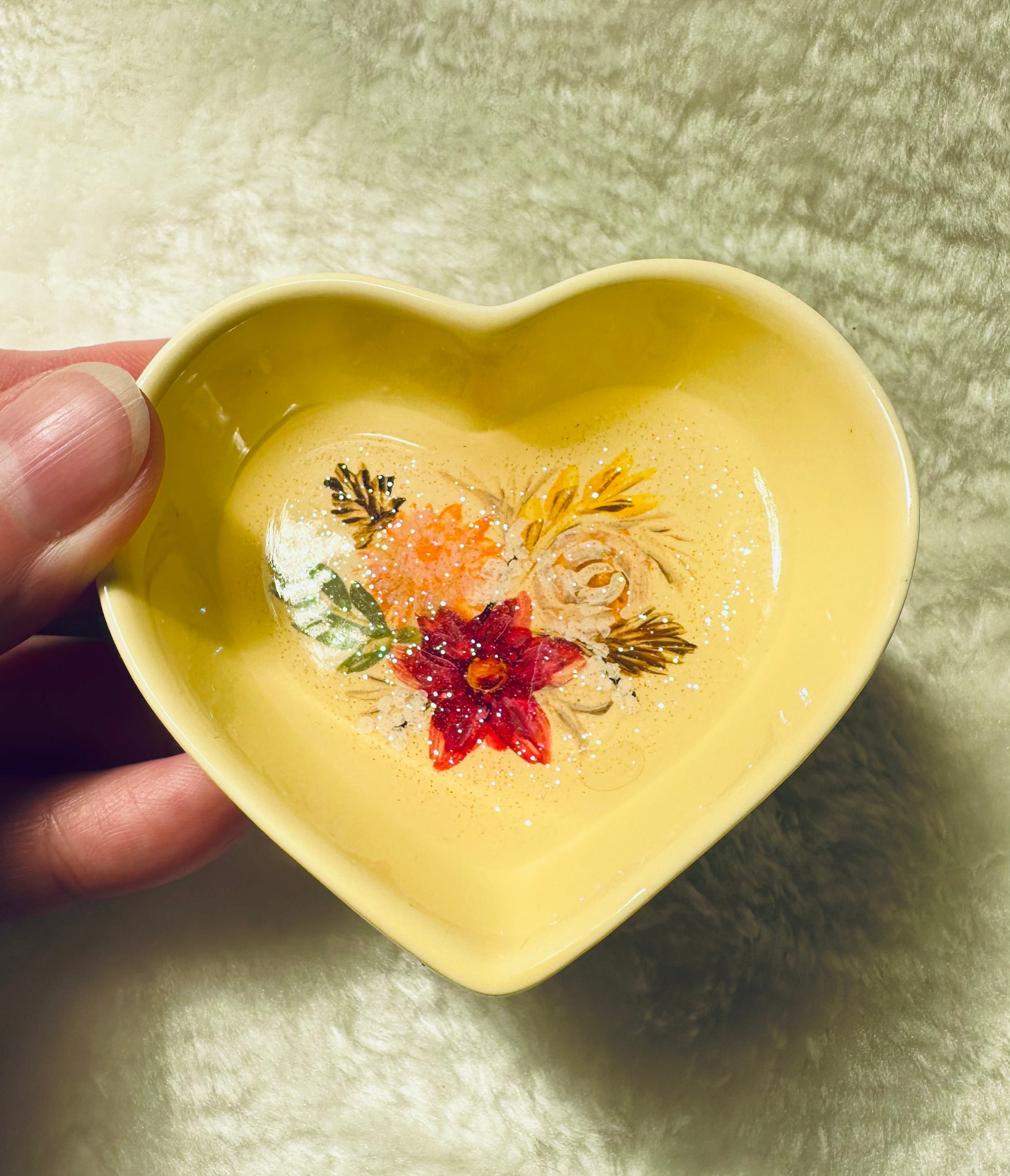 These tiny heart shaped dishes make the perfect addition to your home décor. Big enough to catch earrings, a few rings or odd desk supplies, they give a flare to their surroundings and are little pieces of art all on their own.
