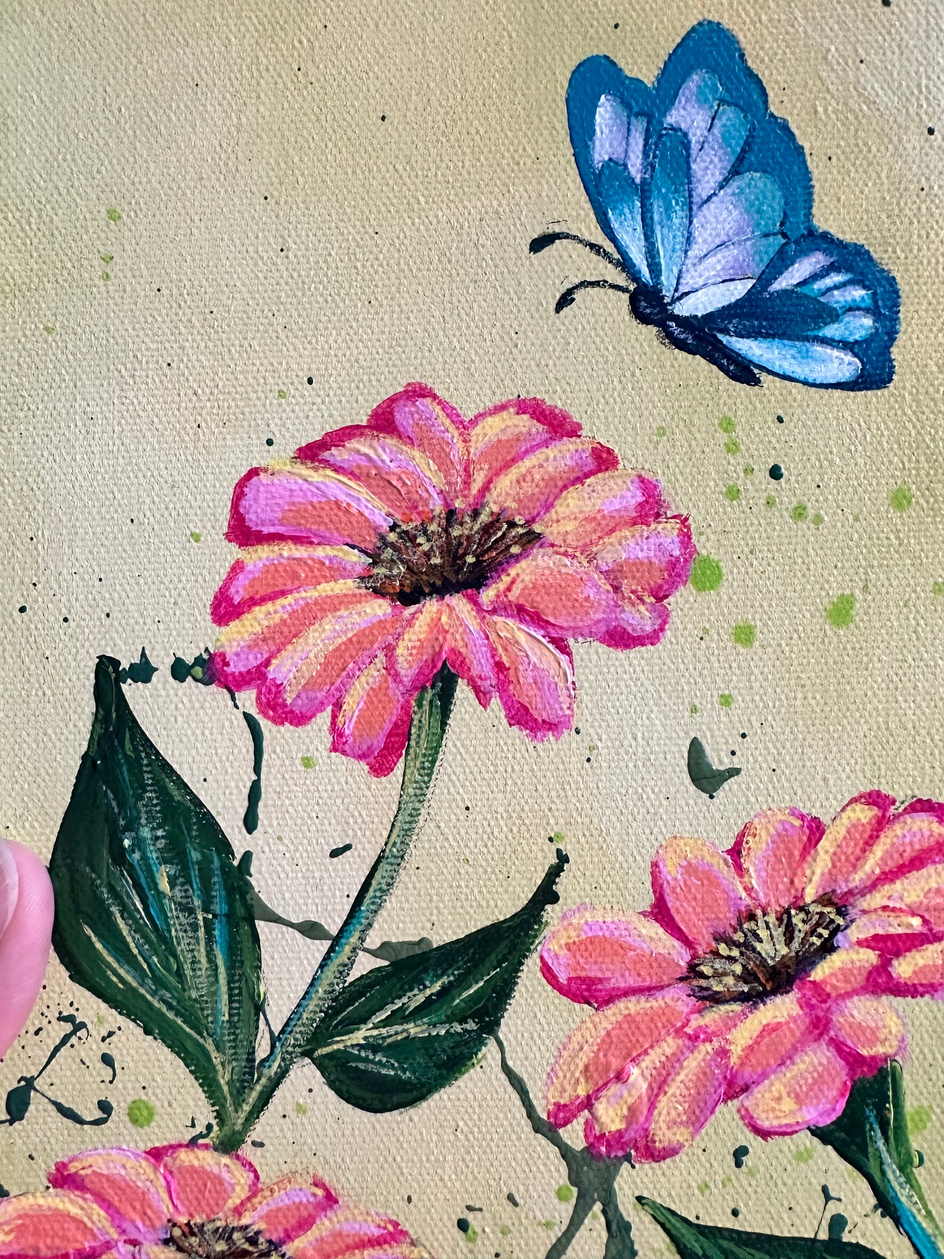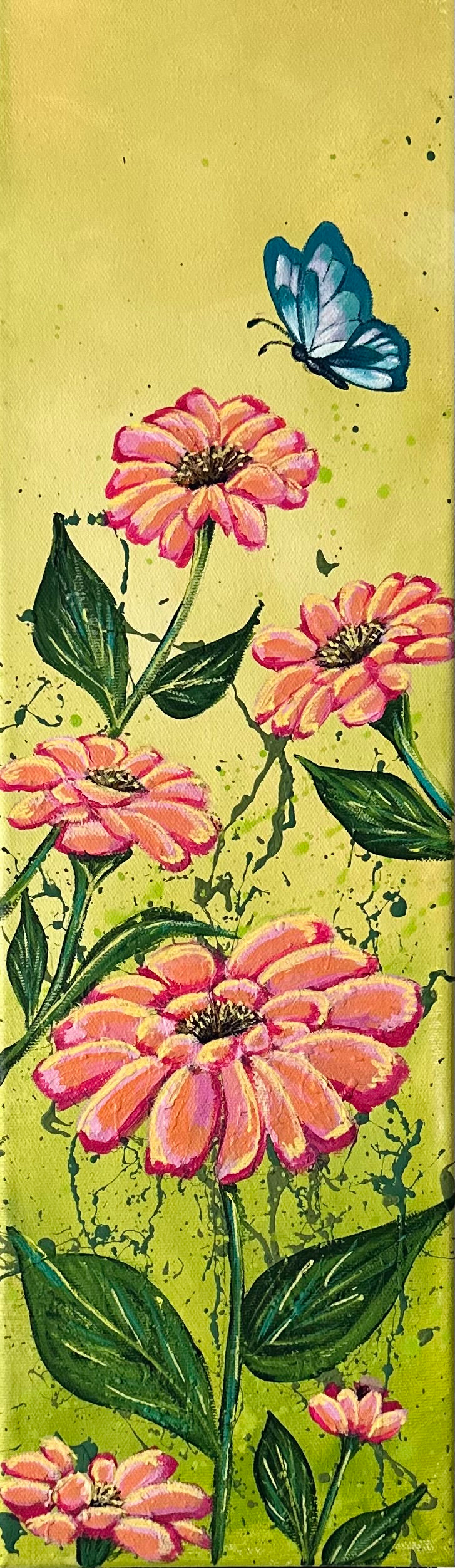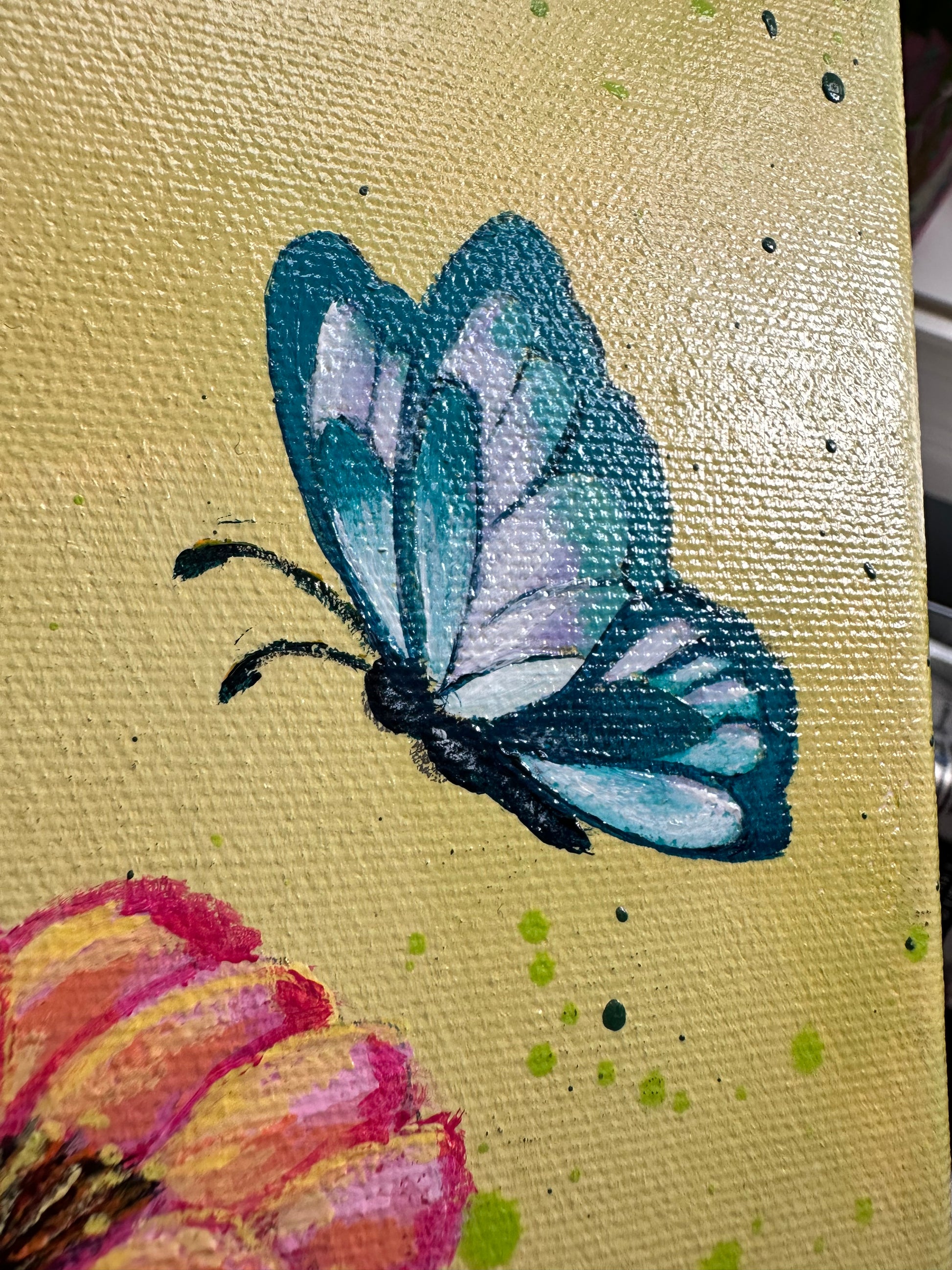 Part of my Garden and Friends series this canvas joins the joy of butterflies and a sunny day.