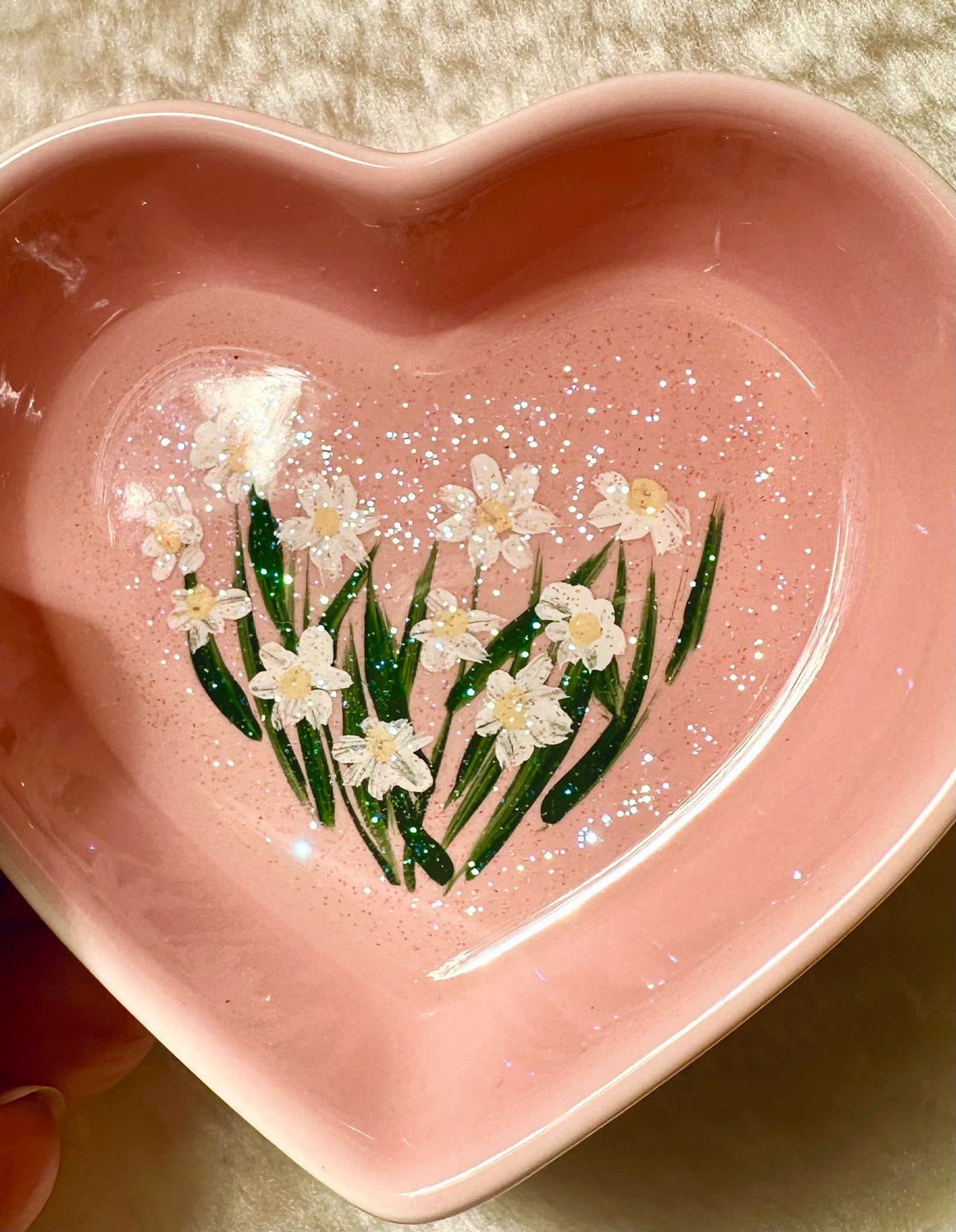 These tiny heart shaped dishes make the perfect addition to your home décor. Big enough to catch earrings, a few rings or odd desk supplies, they give a flare to their surroundings and are little pieces of art all on their own.