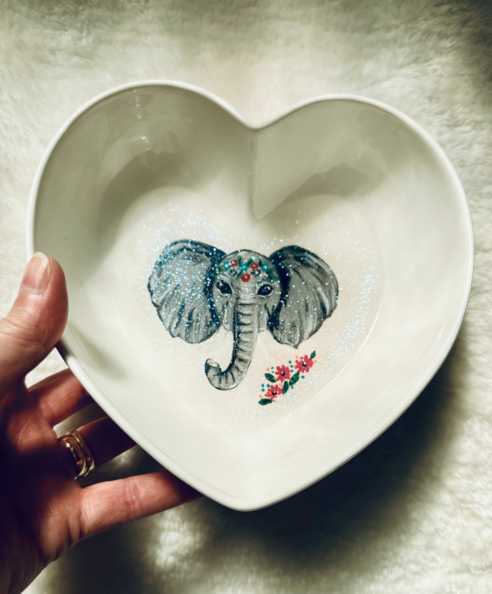 This larger heart shaped bowl catches all things and makes a great candy dish for your home or office. It's also big enough to collect all kinds of odd sods around the house including jewelry, keys and makeup.